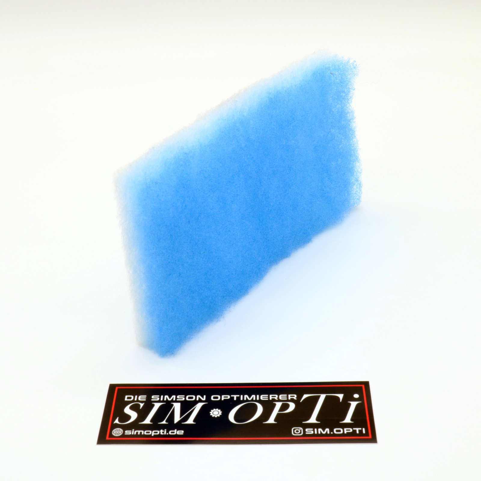 Bei dieser Filtermatte handelt es sich um eine progresive Filtermatte G4. Das bedeutet, dass von der Staubseite zur Reinseite die Struktur immer dichter wird, um auch kleinste Staubpartikel herauszufiltern. Maße der Filtermatte sind 15x8cm, ausreichend für 2 Filter zum selber ausschneiden. Sowohl 2 Filter für die Airbox Satr/Habicht als auch für 2 Schwalbe Filter. Bei der Star/Habicht Airbox ist der Filter rund mit einem Durchmesser von 67mm. Bei der Schwalbe Airbox ist der Filter Rechteckig mit den Maßen 70mm x 65mm. Ein Filter reicht immer für eine Saison.