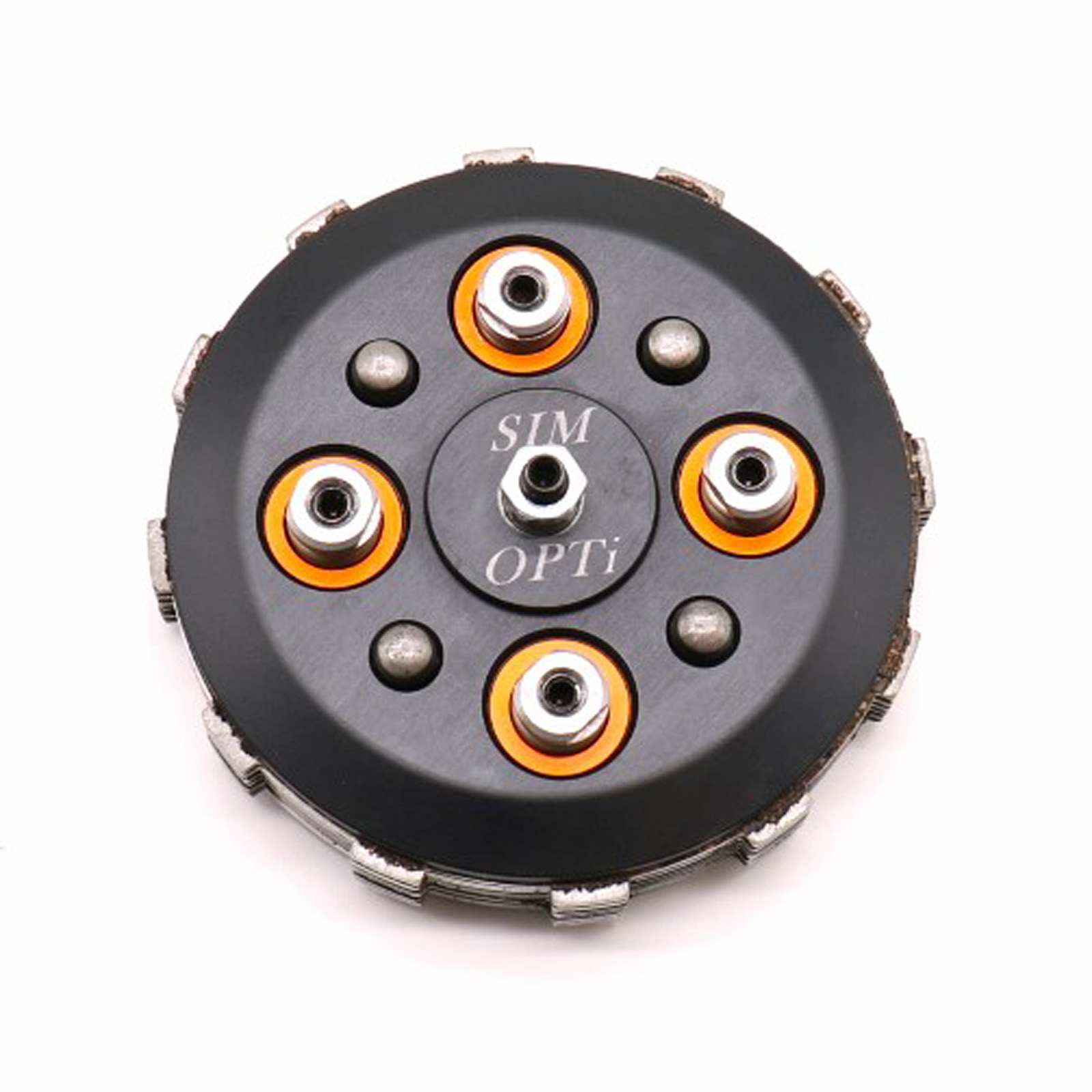 Jede Druckfeder einzeln einstellbar. Dieses Prinzip ist einzigartig auf dem Simson Markt und rechtlich geschützt! Leichter Einbau und eine nie gekannte Leichtgängigkeit zeichnen diese Kupplung aus. Diese Simson Tuning Kupplung wurde von uns sowohl für leistungsgesteigerte als auch für die original Motoren der Baureihe M500/700 entwickelt. Je nach Vorspannung der Druckfedern liegt das Maximum bei der Street-5 bei 16Nm und bei der Street-6 bei 21Nm. Ziel ist es, eine Simson Tuning Kupplung anzubieten, die ein möglichst breites Spektrum abdeckt. Das haben wir durch die Einstellbarkeit der Druckfedern erreicht. Die Führungsbolzen und Gewindebolzen sind bei unserem Mitnehmer nicht einfach verschraubt, sondern mit einer Schweißlehre verschweißt. Das verhindert ein verziehen der Bolzen durch den Hitzeeintrag beim schweißen, sodass die Bolzen absolut gerade stehen. Durch das verschweißen können sich natürlich die Bolzen nicht lösen, wie das bei einigen anderen Simson Tuning Kupplungen der Fall ist. Dazu unsere neue nadelgelagerte Druckplatte mit versenkten Aufnahmen für die Federtöpfe. Neue Federtöpfe aus eloxiertem Aluminium und eigens für unsere Ansprüche produzierte Druckfedern runden das Simopti Kupplungspaket ab. Jede einzelne Druckfeder wird so eingestellt, dass die Druckplatte immer gerade abhebt. Durch die Veränderung der Vorspannung kann auch der Schleifpunkt auf deine Bedürfnisse eingestellt werden. Hohe Vorspannung heißt kurzer Schleifpunkt, weniger Vorspannung heißt längerer Schleifpunkt. Also von sportlich bis komfortabel geht alles. Die Schraubnippel werden durch den Federdruck gesichert und benötigen keine zusätzliche Sicherung. Als Öl empfehlen wir das Simtunol Clutchmaster, welches in Verbindung mit unserer Simson Tuning Kupplung im Test am besten funktioniert hat. Sowohl das Trennverhalten als auch der Schleifpunkt haben sich durch dieses Öl verbessert!
