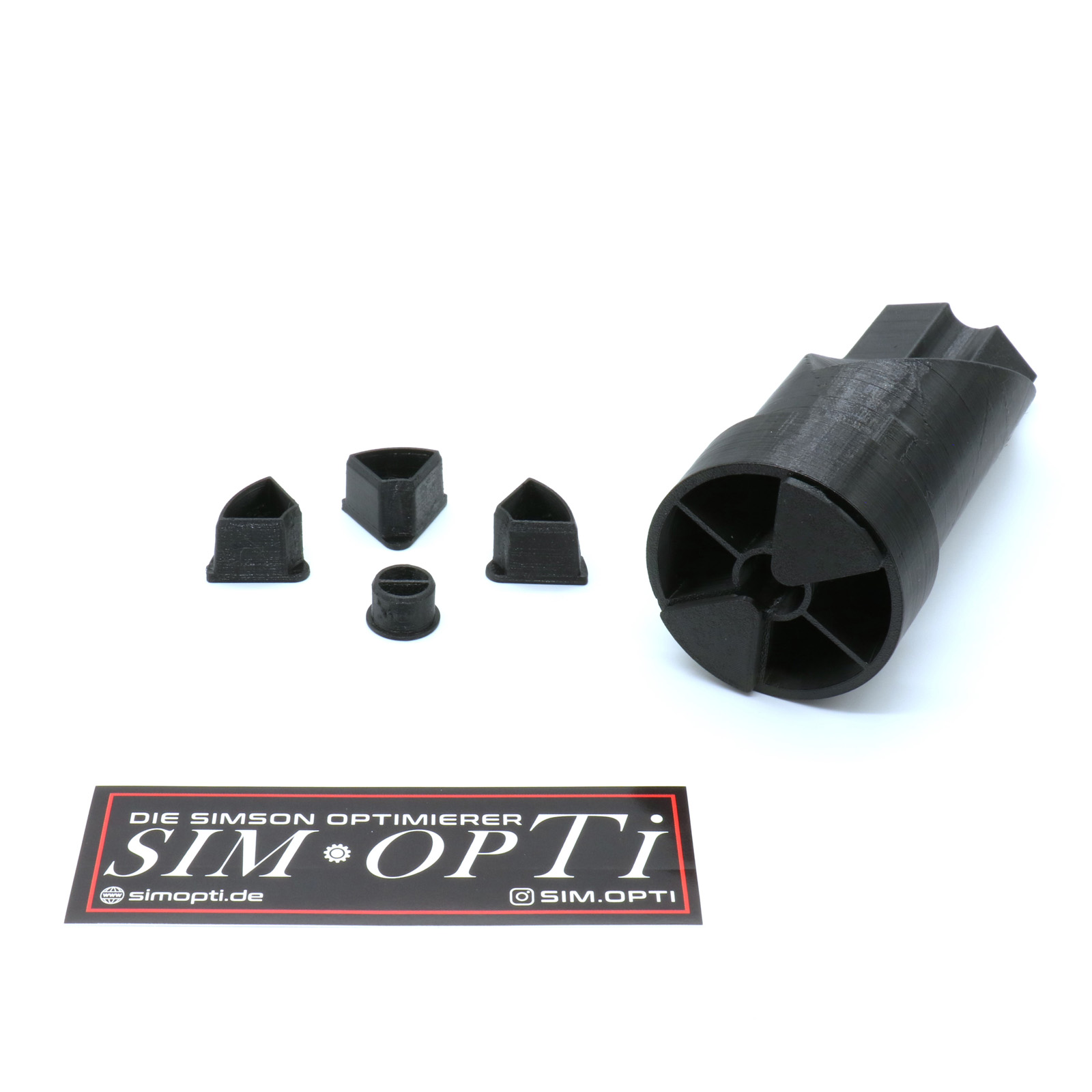 Unter dem Motto weniger ist mehr, haben wir eine Lösung für unsere Star/Habicht Airbox gefunden, die Menge der Ansaugluft zu regulieren. Es gibt verschiedene Zylinder-Vergaser Kombinationen, die von den Tunern so ausgelegt sind, dass sie zT. mit der original Luftmenge bzw. mit nur geringfügig mehr Ansaugluft zurecht kommen. Ein gutes Beispiel ist hier der G65 Zylinder, in Verbindung mit einem 16er Vergaser, von JW-Sport. Dieser würde sich in Kombination mit unserer Airbox ohne die Ansaugluft zu regulieren, nicht abstimmen lassen! Durch die großen Einlässe der Airbox, wird zu viel Ansaugluft zur Verfügung gestellt. Hier mit einer größeren Hauptdüse gegen zu steuern, funktioniert nicht! Es muss die Menge der Ansaugluft reduziert werden. Auch bei „zahmen“ 63iger Zylinder mit 16er Vergaser ist das der Fall.